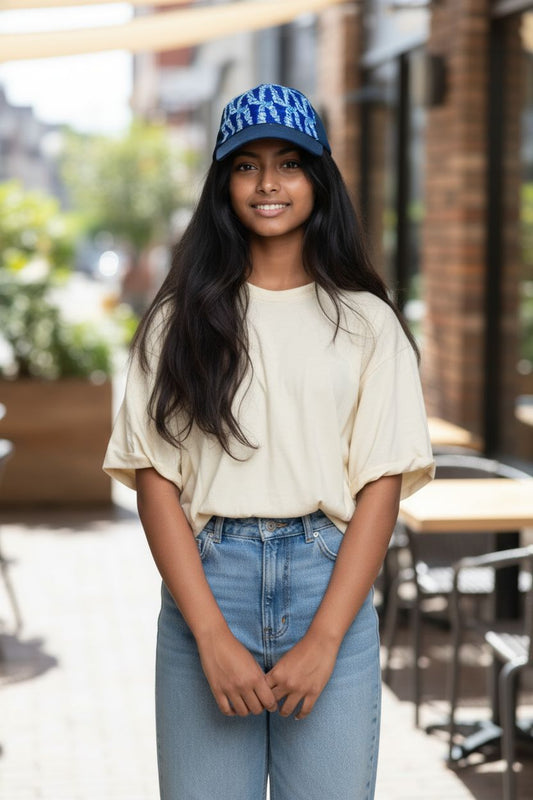casquette enfant NDOP – wax traditionnel camerounais bleu – réglable et mixte