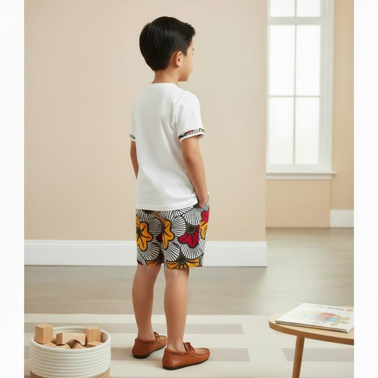 Ensemble Garçon Mpesa Play – Bermuda fleurs & T-shirt wax
