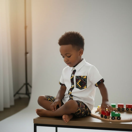 Ensemble garçon chemise et bermuda en wax bogolan – Tenue élégante et confortable