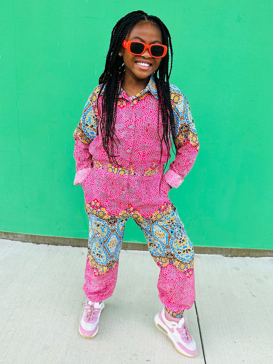Ensemble Enfant MAMBO – Jupe Évasée et Crop Top à Bretelles en Wax