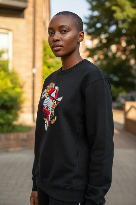 Sweat-shirt unisexe AFRICA noir en patchwork artisanal – 100% coton