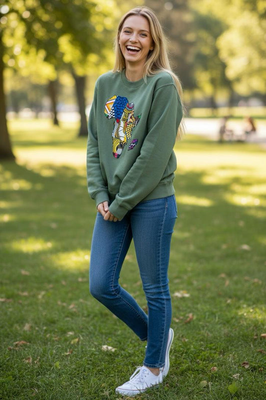 Sweat-shirt unisexe AFRICA vert en patchwork artisanal – 100% coton – style afro moderne