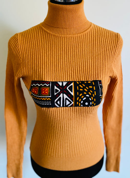 T-shirt Mixte “Africa” – Jaune Coton 100% et Customisation Wax faite main