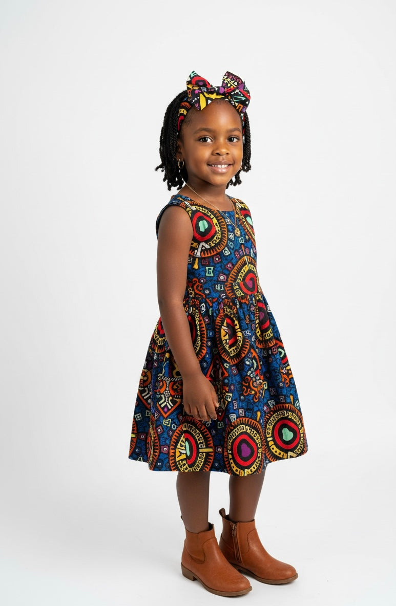 Coloré, confortable et fait main, le bandeau NTEPPE habille les cheveux des petites filles avec une touche de wax pleine de charme.