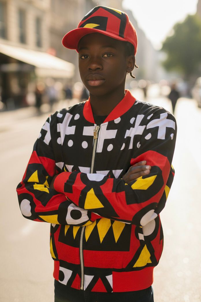 Que ce soit pour une sortie stylée, une fête, un événement culturel ou simplement pour briller à l’école, ce duo bomber + casquette offrira à votre enfant une allure originale, tendance et fièrement assumée.