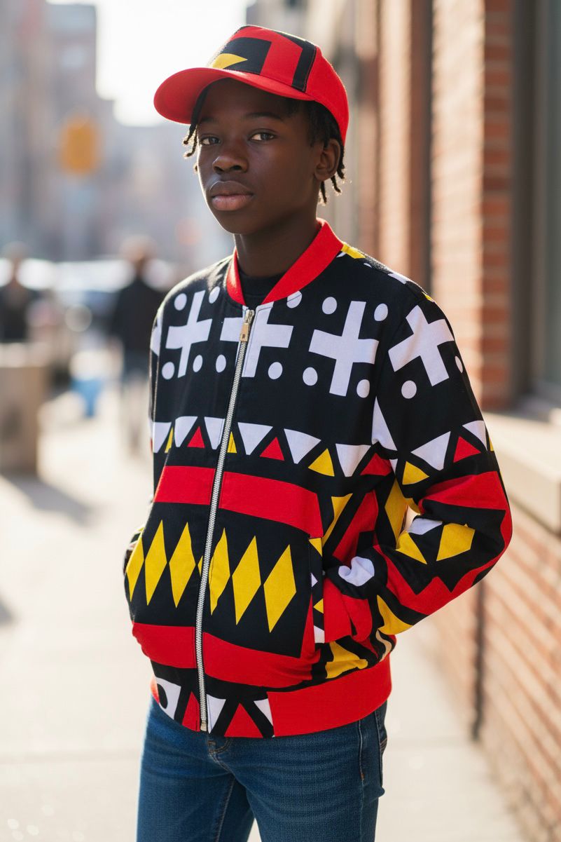 Ajoutez du peps et de la personnalité à la garde-robe de votre enfant grâce à cet ensemble vibrant en wax africain ! Composé d’un bomber zippé et d’une casquette assortie, cet ensemble unisexe est idéal pour les garçons comme pour les filles.