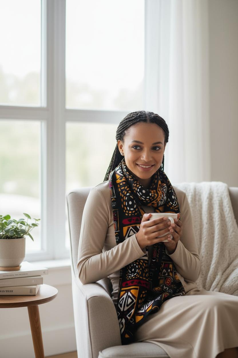 L’écharpe "Bogolan" allie motifs traditionnels africains et confort moderne pour un style mixte, unisexe et authentique.