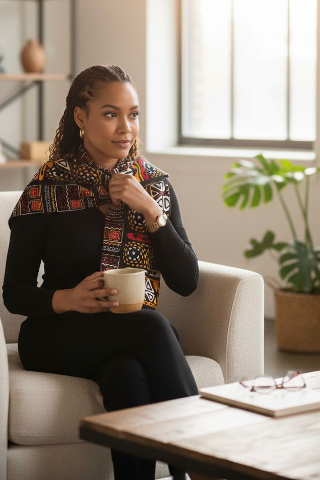 L'écharpe BANYO est confectionnée avec soin à partir de wax de coton à 100%, vous offrant la richesse des motifs et des couleurs africains. La combinaison du wax et du tissu molletonné chaud vous assure chaleur et douceur, faisant de cette écharpe l'accessoire idéal pour affronter les jours froids avec élégance.