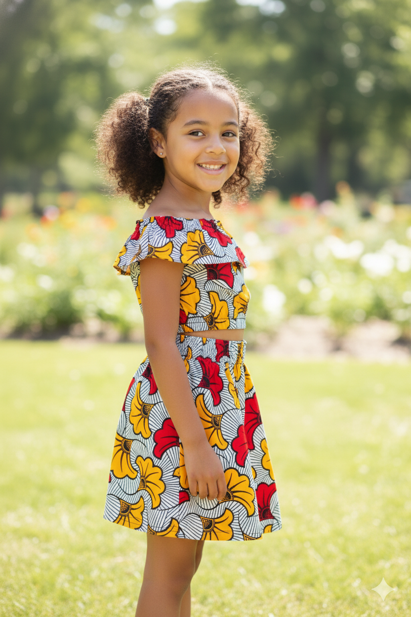 Ajoutez une touche d'afro-moderne à la garde-robe de votre petite princesse avec l'Ensemble Fillette de MPESA Boutique
