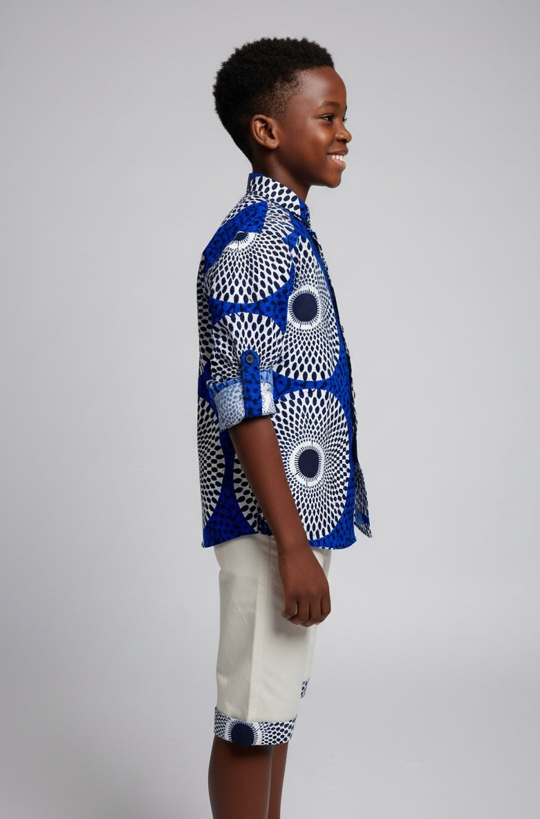 Sublimer vos enfants est notre priorité, c’est pour cette raison que nous vous proposons notre grande nouveauté du jour , ce magnifique ensemble mix imprimé qui fera très certainement le bonheur de votre petit garçon.