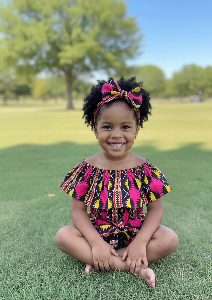 Cet ensemble 3 pièces en wax coloré allie confort, style et originalité, parfait pour les journées ensoleillées, les sorties en famille ou les occasions spéciales .